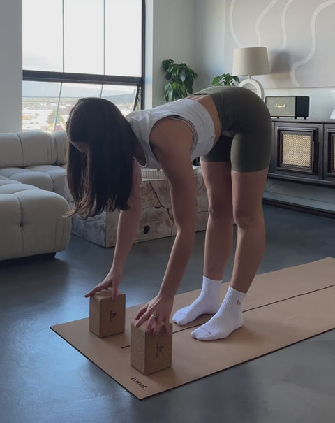Featuring natural cork on top and natural rubber on the bottom, this duo allows you to grip, ground, and grow as you move and flow at home, in the studio, or at the gym. The superior grip is at its most optimal when dampened before or during practice.